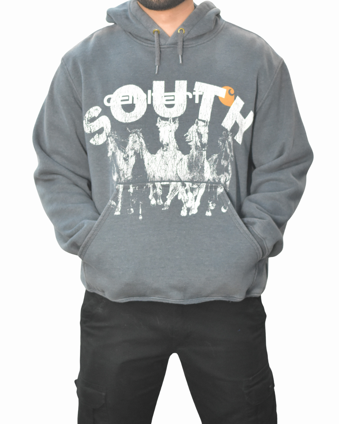 Vintage South Horses Hoodie - Gray (Adult Large)