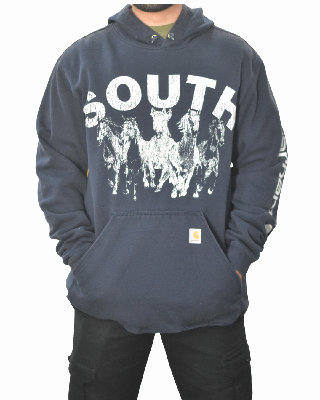 Vintage South Horses Hoodie - Navy (Adult Large-Tall)